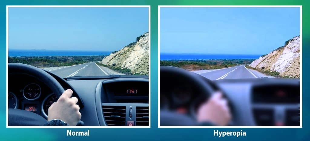 Light rays bend less than they should, so they focus behind the retina. Close objects seem blurred.