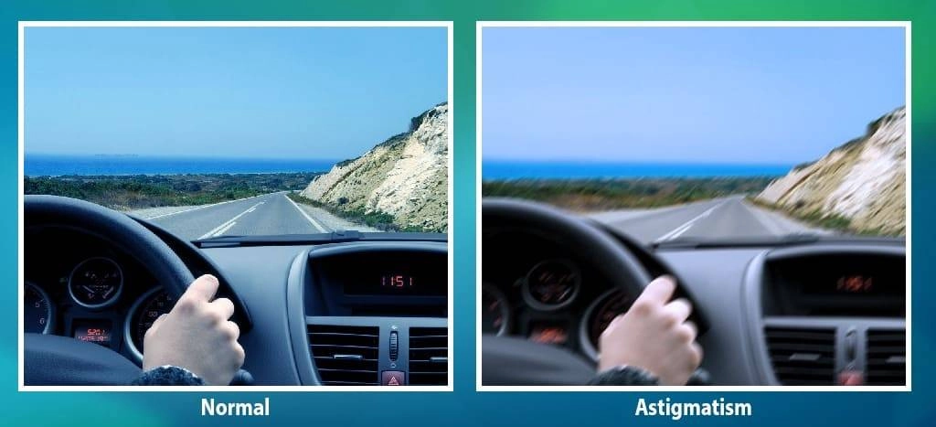 Light rays bend at different angles, so they’re not all focused at the same spot. All objects seem blurred.